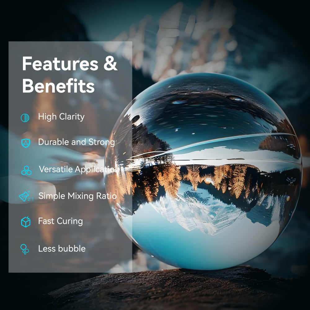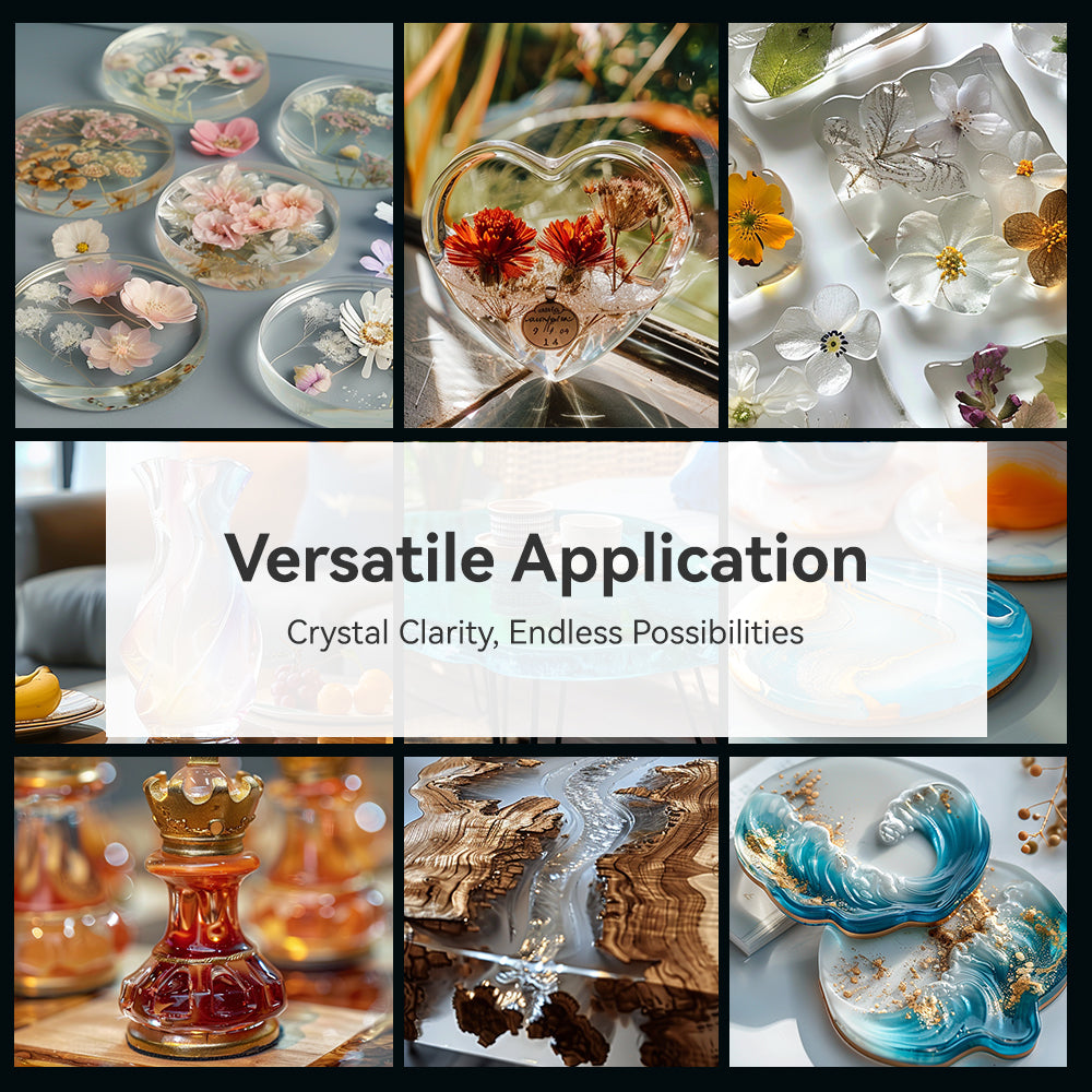 [HIGH GLOSS EPOXY RESIN] Crystal epoxy resin provides a stunning glass-like finish to projects. It remains crystal clear even when exposed to the outdoors. Perfect for casting, coating, art, countertops, jewelry, paintings and molds.