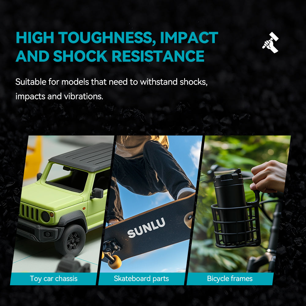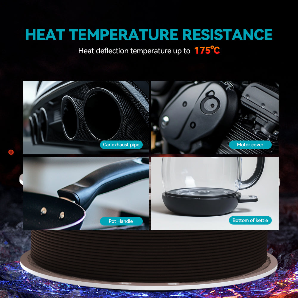 Engineered with carbon fiber reinforcement, SUNLU’s PA12-CF withstands temperatures up to 176°C, ensuring stability in demanding environments like automotive or aerospace applications. Optimized for printing at 260–280°C with a 50–70°C heated bed (use adhesive for adhesion), it delivers reliable performance even under extreme thermal stress.